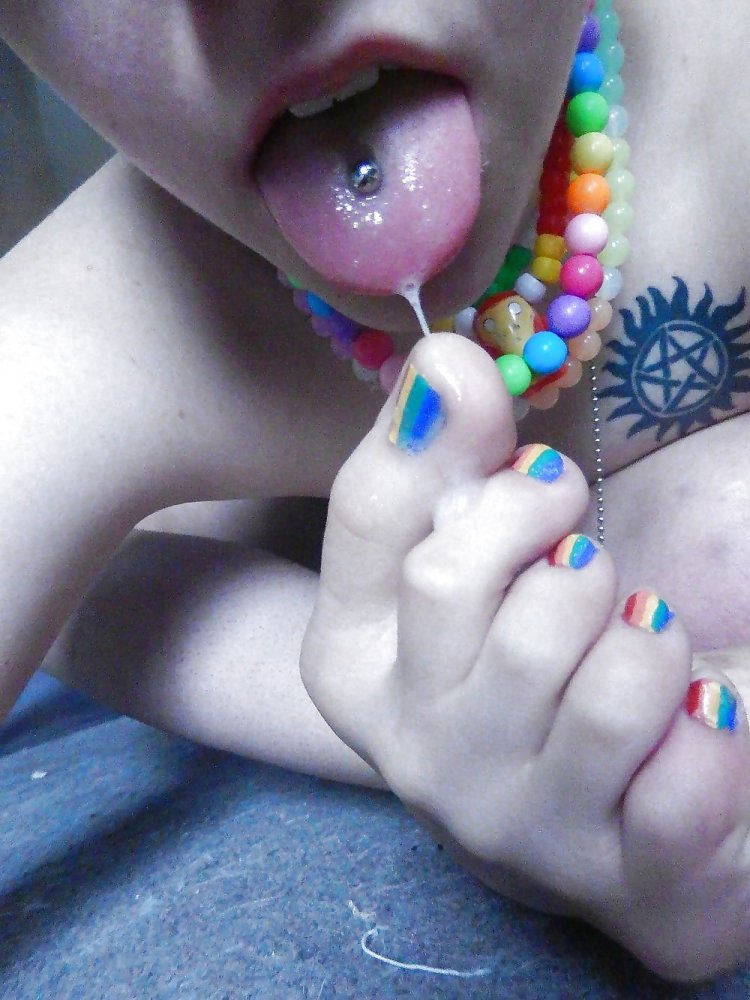 Cum on legs and licked